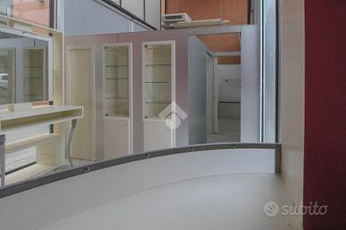 La struttura proposta in vendita è situata al piano terra di un edificio sviluppato su due livelli e dispone di una superficie calpestabile di circa 80 metri quadrati, di cui 25 metri quadrati di soppalco. Internamente, l'immobile si presenta come suddiviso in quattro stanze rese particolarmente luminose grazie alla presenza di quattro vetrine con affaccio esterno. Il locale è dotato dell'impianto elettrico, di illuminazione, di riscaldamento e di condizionamento. A completare la soluzione è la presenza di un servizio igienico privato.