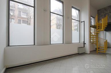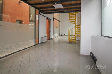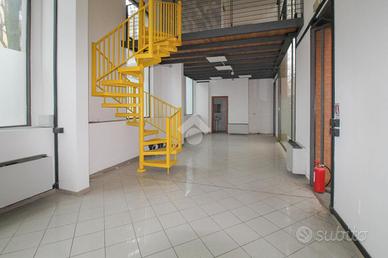 La struttura proposta in vendita è situata al piano terra di un edificio sviluppato su due livelli e dispone di una superficie calpestabile di circa 135 metri quadrati, di cui 45 metri quadrati di soppalco. Internamente, l'immobile si presenta come suddiviso in tre stanze rese particolarmente luminose grazie alla presenza di sette vetrine con affaccio esterno. Il locale è dotato dell'impianto elettrico, di illuminazione, di riscaldamento e di condizionamento. A completare la soluzione è la presenza di due servizi igienici privati.