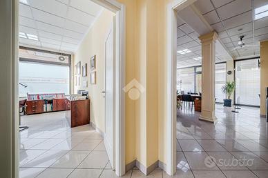 COSA SAPERE SULL'IMMOBILE: l'immobile angolare presenta vetrate su tutto il perimetro, le quali permettono al locale di ricevere molta visibilità e luce, la struttura lineare permette divisioni ampie e funzionali dei locali. Collegata cantina nel sotterraneo di mq. 25, utile per deposito magazzino.