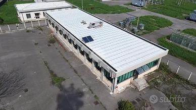 L'immobile è composto da 450 mq ca. di stabile ad uso uffici e, la restante parte di 340 mq ca., è occupata da tettoie e depositi.
