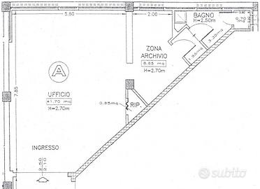 (Riferimento: 1419) Ufficio luminoso situato al piano terra con l'accesso facilitato e comodo per l'assenza di barriere. Esso è composto da un unico e ampio vano con un piccolo ma utile ripostiglio. Separato troviamo una zona da utilizzare come archivio e da dove poi si accede all'antibagno e al bagno completo. La proposta contiene anche un posto auto. E' dotato di condizionatore e verrà consegnato vuoto e libero da qualsiasi arredo oggi presente (salvo occorra qualcosa