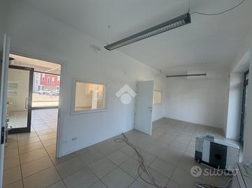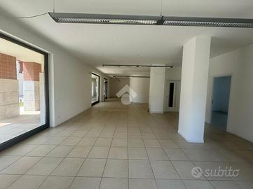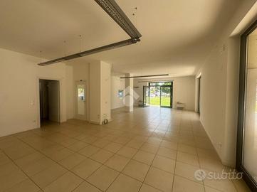 SOMMACAMPAGNA - Nelle immediate vicinanze del centro paese proponiamo in affitto un elegante ufficio di 164 mq distribuito su due livelli, situato in posizione angolare con massima visibilità grazie alle sue 6 ampie vetrine fronte strada.