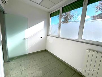 L'immobile, reso luminoso dalle ampie finestre che circondano lo stabile, è composto da quattro vani ad uso ufficio privati e da tre servizi igienici a norma preceduti da antibagno.