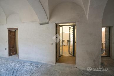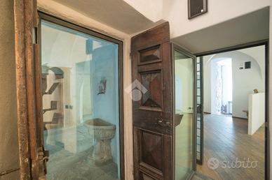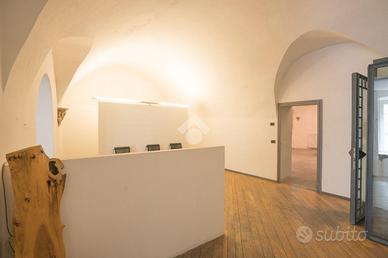 Da una delle vie storiche della città si accede, tramite un ingresso indipendente, al primo locale ad uso ufficio seguito dagli altri due adibiti allo stesso. Ognuno dei tre locali gode di ingresso indipendente, due dei quali danno sulla corte interna dell'edificio.