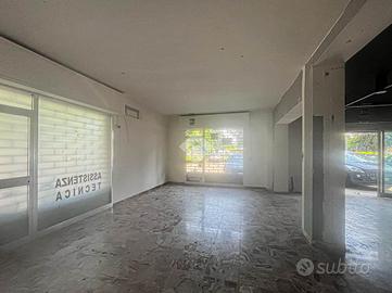 La soluzione proposta in locazione dispone di una superficie calpestabile di circa 100 metri quadrati. Internamente, l'immobile si presenta come un ampio open space reso particolarmente luminoso grazie alla presenza di tre vetrine con affaccio esterno. Il locale dispone dell'impianto elettrico e di illuminazione e ha la predisposizione per l'impianto di riscaldamento e di condizionamento. A completare la soluzione è la presenza di un servizio igienico privato.