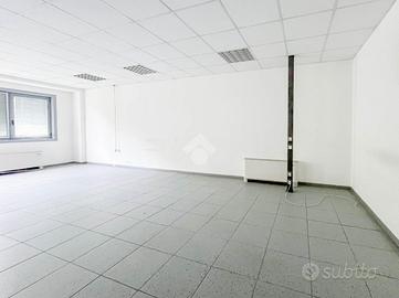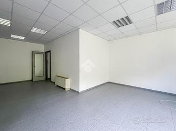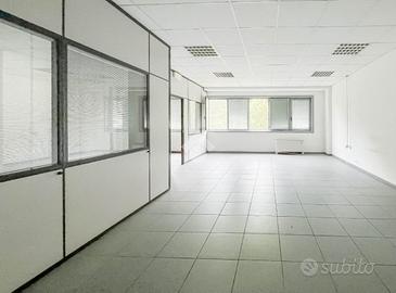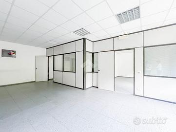 Proponiamo in locazione un ufficio che dispone di una superficie utile di circa 90 metri quadrati, posto al primo piano di un edificio strutturato su due piani complessivi.