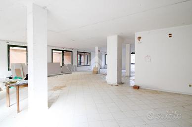 L'ufficio proposto in vendita è situato al piano terra di un complesso commerciale, misura circa 120 metri quadrati. La soluzione si presenta attualmente come open space ed è dotata di due servizi igienici privati. L'ambiente risulta particolarmente luminoso grazie a quattro grandi vetrine. Il locale si presenta attualmente rustico, gli impianti elettrici ed idraulici verranno ultimati dal proprietario su richiesta del cliente.