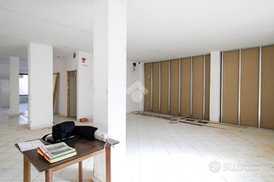L'ufficio proposto in vendita è situato al piano terra di un complesso commerciale, misura circa 100 metri quadrati e ulteriori 20 metri quadrati di magazzino al piano seminterrato con accesso dall'interno. La soluzione si presenta attualmente come open space ed è dotata di due servizi igienici privati. L'ambiente risulta particolarmente luminoso grazie a tre grandi vetrine. Il locale attualmente si trova allo stato rustico, gli impianti elettrici e idraulici verranno ultimati dal proprietario su richiesta del cliente.