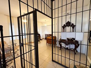 L'ufficio misura 100 metri quadrati, suddiviso in tre locali ed è dotato di un servizio igienico privato. Il locale è alto 3,00 metri e risulta particolarmente luminoso grazie a due grandi vetrine. La soluzione possiede l'impianto di riscaldamento, l'impianto elettrico e quello di illuminazione. L'immobile è servito dall'impianto di allarme e da un sistema di videosorveglianza.