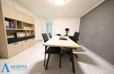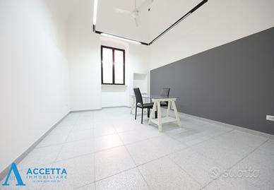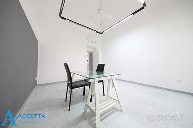 (Riferimento: 490) Appartamento con arredamento per uso studio e ufficio, pronto all'uso, in affitto in Via Pisanelli, adiacenze Piazza Ebalia in Taranto. Ubicato al piano terra, all'interno di stabile dignitoso, l'immobile è composto da: ingresso, 2 ampie stanze - ufficio, un bagnetto, un disimpegno con scala di accesso a due locali soppalcati con piccolo servizio. Situato in ottima e centralissima zona della città, a pochi passi da Piazza Ebalia, dal Lungomare e da Piazza Maria Immacolata, l'immobile offre comodi spazi, ottime rifiniture ed è già completo di arredo per un pronto utilizzo, inoltre è anche dotato di due climatizzatori e porta blindata, il tutto si presenta in ottime condizioni. Una soluzione ideale per ogni attività di studio - ufficio.