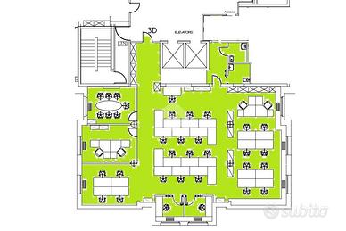 I locali sono suddivisi come da planimetria allegata ovvero ingresso dallo sbarco ascensori, ampio open space operativo con sala meeting vetrata, ulteriore stanza/sala riunione 2 servizi di cui uno norma disabili.