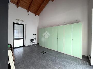 AFFITTO - Via Reiss Romoli proponiamo ufficio fronte strada al primo piano di ca. 150 mq con accesso tramite scale o ascensore / montacarichi ( d'immagine ottime rifiniture ) un vano open + ufficio privato + doppi servizi / doccia e vano tecnico oltre soppalco con travi a vista in legno di ca. 50 mq--impianto elettrico, riscaldamento / raffrescamento autonomo. Ottime condizioni. Spese condominiali Euro 50,00 mese + iva (acqua - passo carraio - illuminazione esterna, pulizia cortile /spazi comuni e manutenzione aree verdi). 1 posto auto. Libero subito