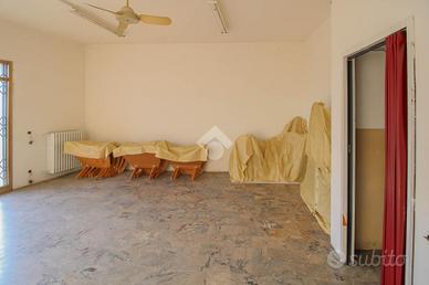 Proponiamo in locazione un ufficio che dispone di una superficie di circa 80 metri quadrati, posto al piano terra di un edificio di tre piani.