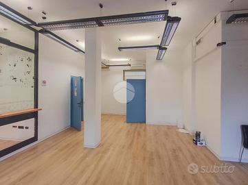 L'ufficio misura 75 metri quadrati ed è situato al piano terra di una palazzina commerciale. La soluzione si sviluppa in due locali ed è dotata di un servizio igienico. L'ambiente è particolarmente luminoso grazie alla presenza di tre grandi vetrine. La struttura è dotata dell'impianto di riscaldamento, l'impianto di condizionamento, l'impianto elettrico e l'impianto di illuminazione. Nell'immobile è presente anche il sistema d'antincendio a idranti ed è inoltre cablato.