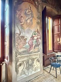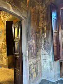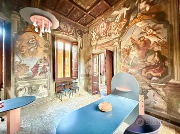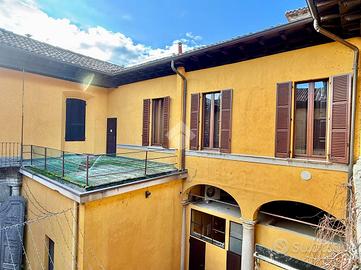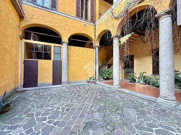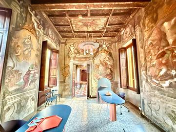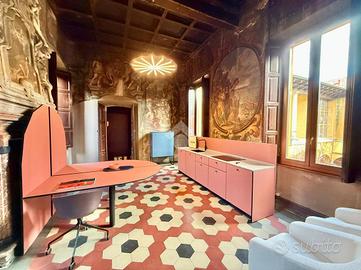 TREVIGLIO CENTRO STORICO Via Galliari: All'interno di una delle 'auliche dimore' più pregevoli e significative della città ('Palazzo Silva'), risalente il secolo XIV (1.300), proponiamo in vendita splendido ufficio di circa 80 mq (attualmente occupato con contratto di affitto 6+6) con terrazza esclusiva di 30 mq. Nella prima stanza , composta attorno da un grande camino arricchito da cornici scolpite, sono presenti quadroni sorretti e circondati da figure con dipinti soggetti a carattere biblico ('Davide fuga dall'Egitto attraverso il mar rosso') e nella seconda stanza dipinti meravigliosi legati al 'Cristianesimo' (Conversione di San Paolo e Battesimo di Gesù). All'ingresso del palazzo Silva è posto un portone in stile barocco che conduce ad un ampio cortile circondato da un portico al piano terra e da una loggia di colonne al primo piano dove si trova l'ufficio oggetto di vendita dotato di bagno, ampia terrazza privata, impianto elettrico a norma, tetto rifatto nel 2014 e serramenti in legno con doppi vetri fonoassorbenti sostituiti nel 2017. L'IMMOBILE E' VINCOLATO ALLA SOVRINTENDENZA DELLE BELLE ARTI.