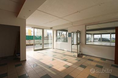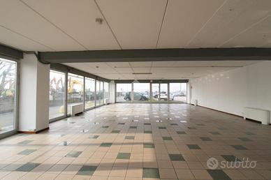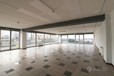 COSA SAPERE DELL'IMMOBILE PER INFORMAZIONI ED APPUNTAMENTI CHIAMA 035.717.67.43 Proponiamo in affitto un ufficio con superficie di circa 260 metri quadrati situato al piano terra di un edificio che si sviluppa su quattro livelli. DESCRIZIONE E PARTICOLARITA' L'immobile misura circa 260 metri quadrati, è situato al piano terra di un edificio che si sviluppa su quattro livelli e gode di una posizione ad angolo con doppio ingresso a norma disabili. L'ambiente risulta particolarmente luminoso grazie alla presenza di tredici ampie vetrine La soluzione è parzialmente controsoffittata e dispone di due servizi igienici privati, di cui uno a norma disabili, oltre a una doccia. Attualmente gli spazi sono suddivisi tramite pareti in cartongesso, ma a partire da agosto verranno consegnati come openspace. L'ufficio, cablato, dispone di impianto di riscaldamento e di condizionamento, impianto elettrico e impianto di illuminazione. Infine, sono presenti anche uscita di emergenza tramite porta tagliafuoco e luci di emergenza. UBICAZIONE E CONTESTO L'ufficio si trova nella zona industriale del Comune di Treviolo, a pochi minuti dalla Strada Statale SS470dir, la quale collega la Città ai Comuni limitrofi. A completamento della proprietà cinque parcheggi esclusivi.