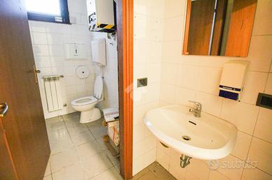 L'ufficio misura 150 metri quadrati ed è situato al piano terra di una palazzina che si sviluppa su due livelli. La soluzione è un open space ed è dotata di due servizi igienici privati a norma disabili. L'ambiente risulta particolarmente luminoso grazie alla presenza di dieci grandi vetrine.