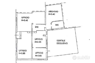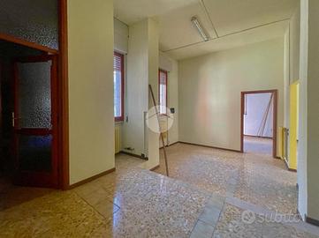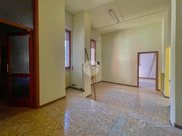 L'ufficio misura circa 130 metri quadrati e si trova al piano terra di una struttura condominiale, che si sviluppa su quattro livelli. La struttura è attualmente divisa in 4 locali ed è dotata di un servizio igienico privato. La soluzione è munita dell'impianto di riscaldamento, dell'impianto elettrico e quello di illuminazione. L'ambiente risulta ben illuminato grazie alla presenza di sei finestre.