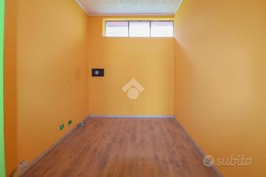 L'ufficio misura 110 metri quadrati ed è situato al piano terra di una palazzina commerciale. La soluzione si sviluppa su quattro locali ed è dotata di due servizi igienici. L'ambiente è particolarmente luminoso grazie alla presenza di sei grandi vetrine. La struttura è dotata dell'impianto di riscaldamento, dell'impianto di condizionamento, dell'impianto elettrico e di illuminazione. L'immobile è dotato anche dell'impianto di allarme e possiede la canna fumaria.