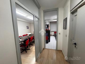 La soluzione è composta da: ingresso, tre stanze ad uso ufficio, una sala riunioni, e due bagni, di cui, uno finestrato ed uno adibito a ripostiglio. Collocata al terzo piano di uno dei fabbricati più riconoscibili della città, dotato di portineria e doppio ascensore, e si sviluppa su una superficie di 96 mq offrendo uno spazio ben distribuito, ideale per attività professionali. La posizione permette una notevole luminosità naturale e una visibilità eccellente offrendo un ottimo affaccio sulla via. A completare l'immobile vi è un posto auto