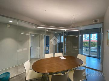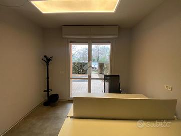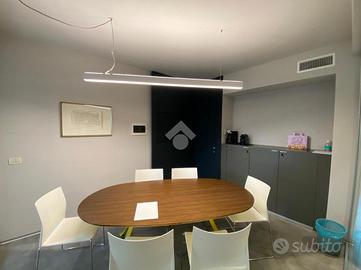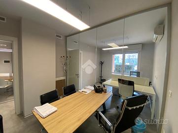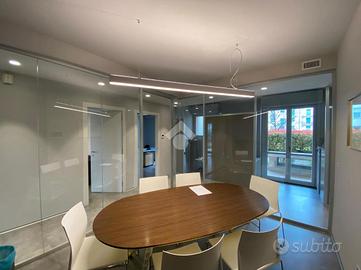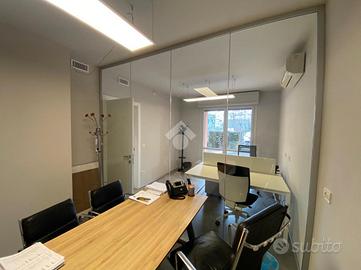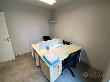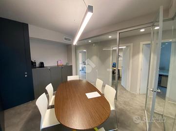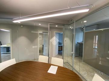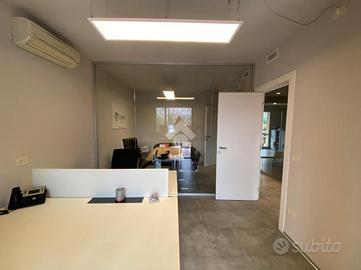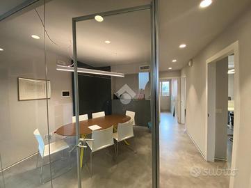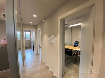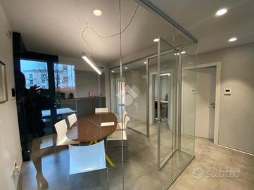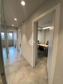L'immobile si presenta completamente ristrutturato nel 2025 e offre un ambiente professionale e funzionale. L'ingresso accoglie al piano terra con una reception spaziosa, ospita cinque locali ad uso ufficio di diversa metratura e una sala riunioni, perfetti per incontri e lavoro di squadra. Un'uteriore sala riunioni si trova al piano interrato, assieme ad un locale ristoro ed un servizio con antibagno, raggiungibili tramite scala interna o ascensore privato.