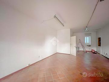 La soluzione si sviluppa su una superficie commerciale di circa 50 metri quadrati disposti interamente al piano terra di un edificio strutturato su quattro piani. Internamente l'immobile si presenta come un ampio open space reso molto luminoso grazie alla presenza di una vetrina con affaccio esterno. Il locale è completo degli impianti elettrico, di illuminazione, di condizionamento e di riscaldamento. A completare la soluzione la presenza di un servizio igienico privato.