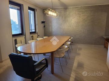 VILLONGO: Proponiamo in locazione ufficio di ca. 92mq posto al secondo piano di una palazzina fronte strada con box doppio interrato di ca. 27mq. La soluzione è completa di servizi igenici, riscaldamento, raffrescamento, due balconi e arredo.