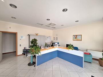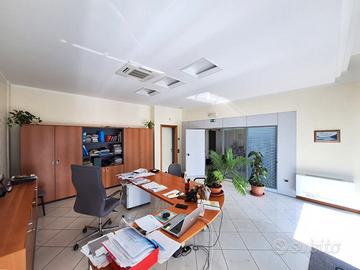 Affittasi ufficio, in Area Tosi, con ampia vetrata con due ingressi, sito al piano terra, composto da: grande ufficio suddiviso in due locali, disimpegno, ripostiglio con cucinotto, sala riunioni, 2 bagni entrambi finestrati con anti-bagno. Locale da deposito con ampio portone d'accesso (h 4 mt).