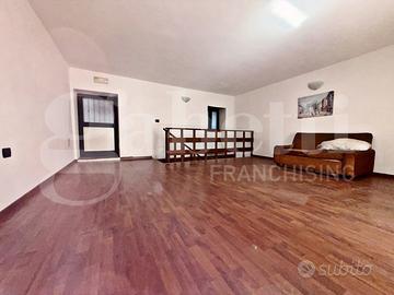 Dal vano principale parte una scala in legno che conduce al piano superiore, dove si trova un secondo ambiente ampio, pavimentato in parquet, adatto a ospitare una sala riunioni, uno studio dirigenziale o un secondo ufficio operativo. Qui Ã" presente anche un balcone con affaccio interno, che garantisce ulteriore luce naturale e unâottima ventilazione. Il bagno si trova al piano terra, comodo e funzionale.