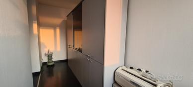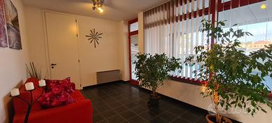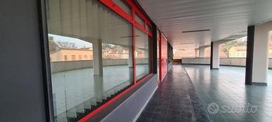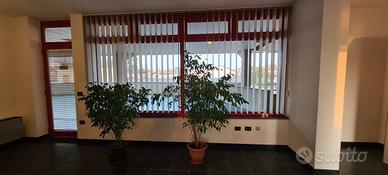 Le vetrine garantiscono una buona visibilità e l'arredamento, comprensivo di scrivanie, mobili, reception e tendaggi è completo e compreso.