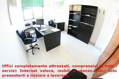 Ufficio arredato in complesso custodito, piano ammezzato, facilmente accessibile, termoautonomo, ascensore, pronto e funzionante, attesa, sala riunioni, aree relax, aree esterne e parcheggi. Inclusi nel pacchetto: