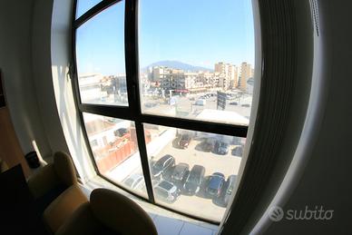 In centro polifunzionale custodito e dotato di aree esterne, ampio ufficio-locale completamente arredato, cablato, climatizzato, pronto all'uso con agibilità, dotato di ampie finestre panoramiche sul Vesuvio, piano 2 con ascensore e montacarichi direttamente accessibili dalla strada privata.