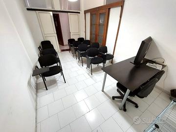 Ufficio arredato con connessione in fibra, sala riunioni e posti auto disponibili.
