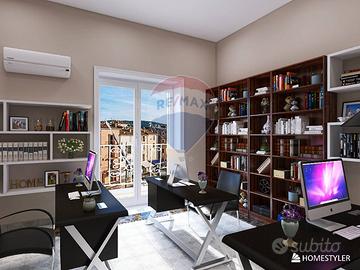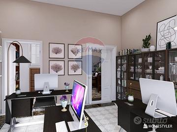 La sua disposizione interna è perfetta per un'attività professionale: un'elegante zona d'ingresso/reception accoglie i clienti in uno spazio raffinato. Seguono quattro stanze ad uso ufficio, di cui tre con affaccio sui balconi esterni che regalano una vista aperta e luminosa. La quarta stanza, dotata di finestra, garantisce anch'essa un' luminosità.