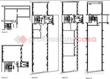 Le unità sono composte da porzioni occupanti gli interi piani secondo, terzo e sottotetto oltre che da una parte della superficie dei livelli primo ed interrato. Un unico corpo scala condominiale servito da vano ascensore permette l'accesso ai diversi livelli di piano della porzione che evidenzia, per quanto riguarda la parte ad uso ufficio e gli ambiti ad archivio dell'interrato, un buon livello di finiture mentre il piano sottotetto è stato lasciato al rustico.
