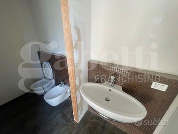 Il piano terra di circa mq 160 prevede la presenza di un ampio open space e di 4 stanze, oltre a 2 bagni. Al piano seminterrato un locale di circa mq 52 e uno di circa mq 18 e un'autorimessa di circa mq 75.