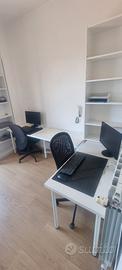 + 3 scrivanie attrezzate con PC desktop, sedie e librerie