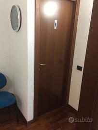 Una stanza in Ufficio condiviso con 4 stanze, di cui 3 già occupate. La stanza e attrezzata con 2 postazione di lavoro con 2 scrivanie con rispettive poltrone in pelle, 2 personal computer complete di tutti gli accessori compreso monitor etc. etc. Oltre a questo un telefono collegato al centralino con telefonate illimitate, internet on fibra, fotocopiatrice multi finzione collegata in rete. Una saletta e 2 bagni in condivisione, il costo e di 150 euro mese + 150 euro forfettarie mensili per tutte le spese di luce e gas, telefono, internet, acqua, spese condominiali e pulizie una volta alla settimana. Il costo per l'affitto complessivo di spese e di € 300