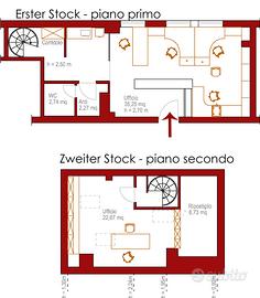 Ufficio duplex nelle vicinanze del centro storico di Bolzano - ora in affitto È disponibile in locazione un luminoso e versatile ufficio duplex situato a pochi passi dalla zona pedonale di Bolzano. La posizione centrale rende questo immobile ideale per aziende, liberi professionisti, studi di servizi, attività creative oppure per chi desidera combinare abitazione e lavoro. L'ufficio si trova al 1° piano di un edificio direzionale. Una elegante scala a chiocciola collega l'ambiente principale con il piano sottotetto, creando un'atmosfera di lavoro moderna e aperta. La superficie di 80 m² è ben distribuita e offre numerose possibilità d'uso: sala riunioni, uffici singoli o condivisi, studio creativo e molto altro. Il riscaldamento e la produzione di acqua calda sono completamente autonomi tramite scaldabagno a gas, garantendo efficienza e indipendenza nella gestione energetica. Su richiesta è possibile locare due posti auto, un vantaggio notevole in questa zona centrale. L'immobile è già libero e può essere consegnato immediatamente. Le visite possono essere organizzate in qualsiasi momento. APE: G Un ufficio moderno e flessibile in una posizione privilegiata - la soluzione ideale per professionisti che cercano comodità, visibilità e un contesto urbano dinamico.
