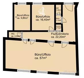 Rf.nr.: L010 Proponiamo in locazione un ampio ufficio situato al 2° piano di un edificio ben curato con ascensore, nel centro di Bolzano. Bolzano è una città dinamica nel cuore dell'Alto Adige, apprezzata per il suo affascinante centro storico, l'elevata qualità della vita e la posizione strategica tra nord e sud. L'ufficio dispone di una superficie di circa 134,00 m² e offre ambienti ben distribuiti, ideali per diverse soluzioni operative. L'immobile è composto da tre uffici spaziosi, che garantiscono condizioni di lavoro ottimali, ed è completato da due WC e da un pratico ripostiglio. Superficie commerciale: 134,00 m² Superficie netta: 111,70 m² Ripostiglio: 1,30 m² Piano: 2° piano Consegna: da concordare Spese : ca. 200€ / Mese Al fine di tutelare la privacy, precisiamo che gli indirizzi presenti negli annunci sono puramente indicativi. Per visionare l'immobile o ricevere ulteriori informazioni siamo a disposizione! Questo immobile in vendita viene proposto dall'agenzia immobiliare HOME IMMOBILIARE. Siamo specializzati nella compravendita d'immobili in tutto l'Alto Adige, i nostri punti di forza sono soprattutto la trasparenza e la professionalità. Inoltre, accompagniamo ogni cliente dalla proposta d'acquisto fino all'atto notarile. Siamo inoltre lieti di valutare la Vostra proprietà gratuitamente, in modo che tu sappia esattamente quale prezzo puoi ottenere.