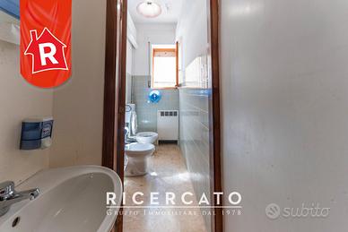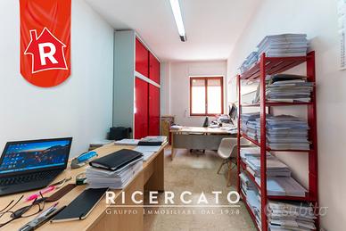Situato al piano rialzato di una palazzina anni '80, questo ufficio di circa 180 mq offre un ambiente professionale in buono stato conservativo.