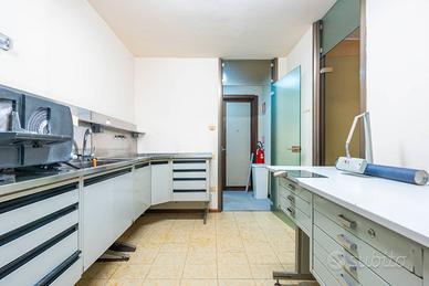 L'immobile vanta una superficie commerciale di circa 200 mq (176 mq interni calpestabili) ed è stato precedentemente adibito a studio dentistico, conservando finiture originali di pregio in stile anni '70. Le finiture includono rivestimenti in legno, moquette in diversi ambienti e dettagli che conferiscono all'immobile un'atmosfera calda e professionale.