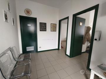 L'immobile, situato al primo piano (senza ascensore), ha una superficie di 60 mq lordi con la seguente dislocazione interna: ingresso/sala d'attesa, due stanze lavoro, antibagno e bagno. Tra i dettagli interni il locale presenta pavimenti in ceramica, infissi in alluminio con doppi vetri e un importante plus come l'aria condizionata.