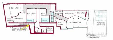 É effettivamente un immobile commerciale adatto per tutti d'attività. Elegante studio medico o laboratorio, meraviglioso negozio al dettaglio o ovviamente, un ufficio meravigliosamente visibile nel centro di Lana. L'edificio è stato costruito nel 1997 e nel 2006 è stata effettuata una completa ristrutturazione interna. Un ampio e confortevole ingresso con oltre 7 vani d'ufficio, oltre cucina, bagni, archivio e cantina. A chi piace il mobilio, l'illuminazione ecc. Le può avere - sono comprese. L'intero immobile è dotato di aria condizionata centralizzata e riscaldamento a soffitto. La superficie netta misura circa 237 mq, più 20 mq di locali accessori. La cantina, gli spogliatoi e il locale tecnico misurano 78 mq. L'immobile è già dotato di cablaggio in fibra ottica. L'offerta comprende anche 6 posti auto all'aperto. Scimmia F