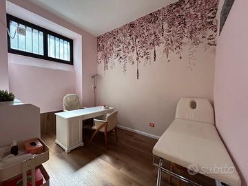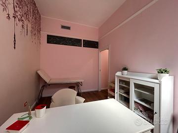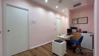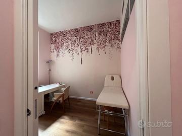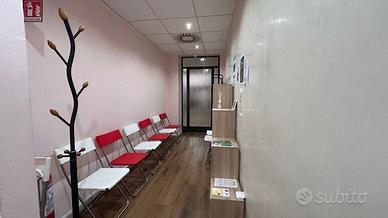 Gli spazi sono ben distribuiti con una area reception e sala d'aspetto che trova spazio nel disimpegno all'ingresso oltre a un ampio bagno con box doccia e antibagno.