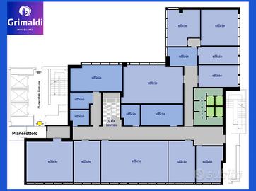 Troverete 11 stanze di varie dimensioni, una sala conferenze, una sala riunioni, un salotto, un locale tecnico, una zona break e 8 bagni.