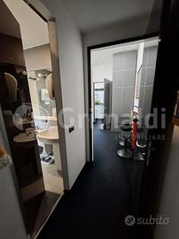 L'unità immobiliare, è composta da ampia reception, quattro grandi stanze di cui una con bow window, ampio open space, locale break attrezzato con cucina, ripostiglio, bagno con doppi servizi e balcone con affaccio interno, cantina.
