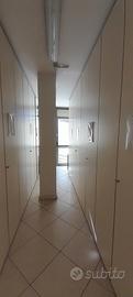 L'ufficio è composto da un unico locale Open Space (attualmente suddiviso, in parte, da armadiature ad uso archivio), da un bagno con antibagno e da due ampi balconi.