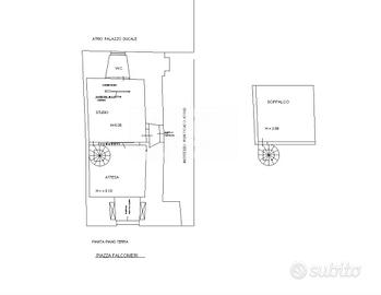 Lo studio ha sia un accesso dal fronte strada, ovvero da Piazza Falconieri, sia un secondo ingresso dell'atrio del palazzo; questo consentirebbe, a seconda delle esigenze, di rendere indipendenti le due stanze.