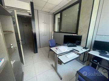 Primo piano: - Di complessivi mg 189,00 destinati ad ufficio, le divisioni interne, ad eccezione dei servizi igienici, sono realizzate con tramezzature prefabbricate facilmente rimovibili o spostabili.